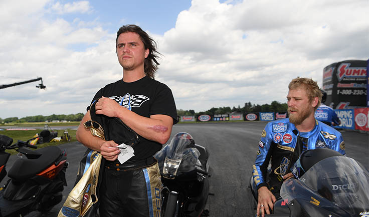When Cory Reed crashed his Pro Stock Suzuki during last year’s DeWalt NHRA Carolina Nationals in Concord, he instantly knew that he’d been seriously injured but his first thought was not about his own wellbeing; rather it was concern for his teammate, Joey Gladstone, who was also involved in the scary two-bike accident.