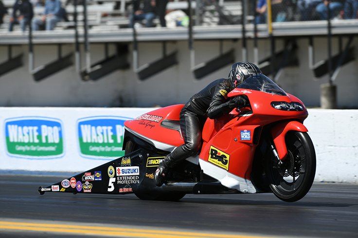 In Gainesville, 12 of the 16 qualifiers were riding Suzukis, although eventual runner-up Angie Smith turned in solid numbers aboard her Buell, including a career-best 6.724 in the final.