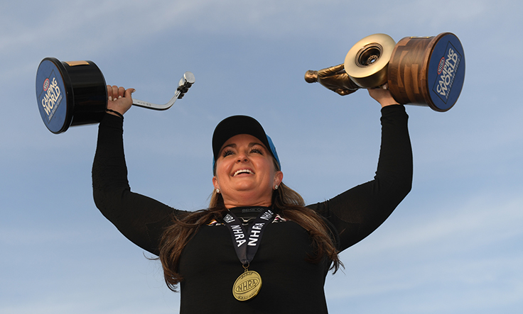 After clutching the special-edition 900th Pro Stock trophy, Erica Enders said it plain and clear, that there’s “No more nice Erica” to be found on Sundays, and after dominating the event from qualifying through race day, it’s clear she meant it. The Elite team could not have had a better weekend, from her and teammate Aaron Stanfield qualifying Nos. 1 and 2 and then finishing that way in the final, it was a huge weekend for her. Add in the fact that she left on Dallas Glenn, the driver who seems determined to usurp her crown as the best starting-line leaver, in round two and beat her nemesis, Greg Anderson, in the semifinals, she checked all of the boxes.