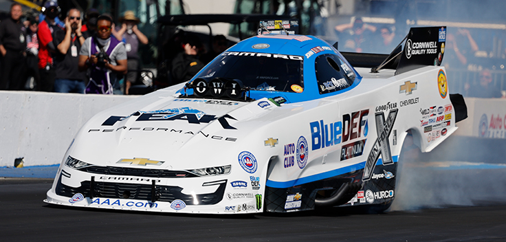 “Pomona, home track, that was difficult,” he admitted. “Not the showing we wanted, but as a team owner, it was a good weekend, This Peak BlueDef team, we know we’ll be OK. Something just didn’t quite add up in Pomona. We had some new clutch discs, and when the track’s good, it’s aggressive, and if you hit the wrong spot, it’s trouble, but I know Danny Hood and Tim Fabrisi, they have this Chevrolet dialed in. We showed what we could do at testing. So, I’m not worried. I’m excited.”