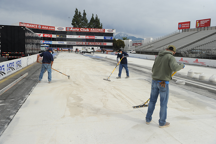 Freshly ground, polished, and prepped racing surface will await Pomona racers