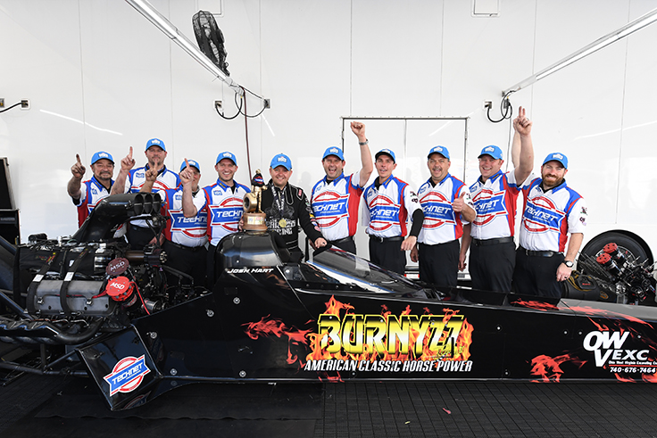 After skipping a long trip west for the four-wide event in Las Vegas, Hart got right back to winning rounds in Atlanta, where longtime supporter TechNet was back on board, and in Charlotte, where he reached the final round of the four-wide race but finished third, keeping him in the top five of the points standings.