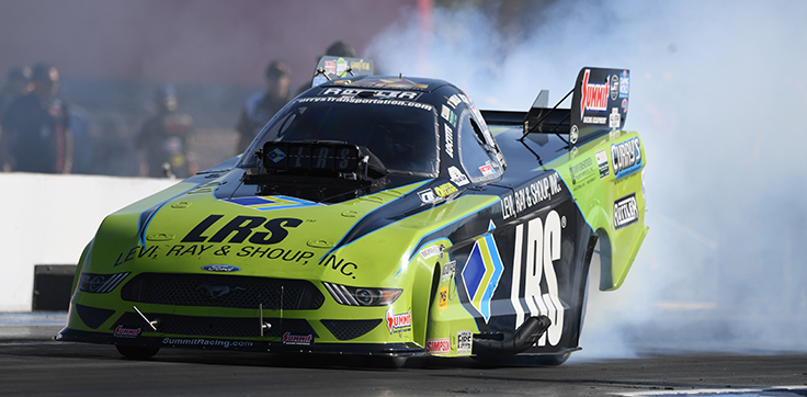 A proverbial thorn in the side of the bigger teams in the loaded Funny Car ranks, Wilkerson continues to perform at a high level in his 11,000-horsepower Levi, Ray & Shoup Ford Shelby Mustang. He’s currently eighth in points and is just 58 points out of fifth heading towards what will be a busy weekend for the fan-favorite driver.