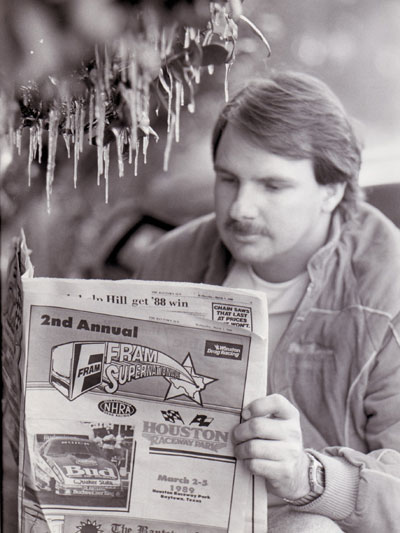 The Funny Cars came to the line for the final session, and the track was a veritable skating rink. Only a few cars were able to hook up despite tire-melting burnouts and a constant application of torches by the Safety Safari. Don Prudhomme, who qualified No. 1 with the first 5-teen in Funny Car history (5.19) but didn’t make it down the track in that frigid session, explained succinctly, "The motor said, 'Let's go,' and the tires said, 'Bulls--t.' "