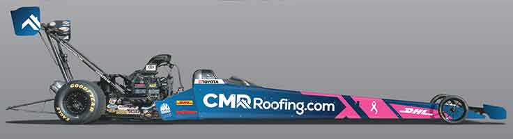 “This is an important cause to support and raise awareness for not just in the month of October but throughout the year,” said Todd, a 10-time Funny Car national event winner. “Breast cancer affects so many people every year that we just want to do our part to help support those that are battling and help support the organizations that are working on a cure. It is cool that we get to do this with both DHL and CMR Construction and Roofing.”