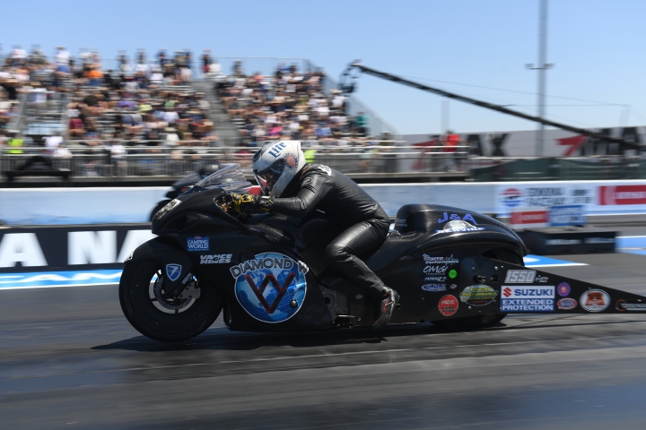 Pro Stock Motorcycle-7.381 seconds by Matt Hines, Sept. 1997; 182.88 mph by Matt Hines, Sept. 1996
