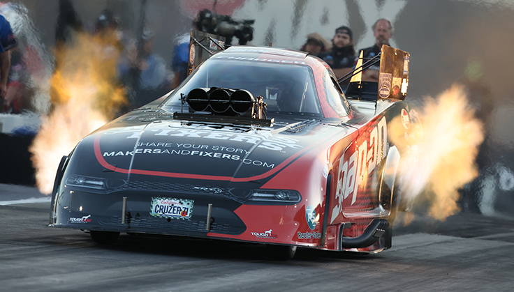 With his place in the Betway NHRA Carolina Nationals Funny Car field safely secured with his 3.93-second blast Friday night, two-time NHRA Funny Car world champ Cruz Pedregon will become just the third racer in the NHRA Camping World Drag Racing Series to record 600 raceday starts when he fires the car Sunday morning at zMAX Dragway.