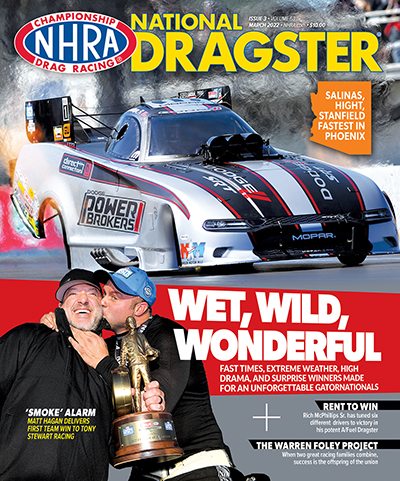 The issue is packed with a trio of features on racers you need to learn more about: Top Alcohol Dragster team owner Rich McPhillips, who has tuned six different drivers to victory over the past few seasons; Stock racers Brooke Warren Foley and Steve Foley, whose drag racing lineage has spurred them to their own greatness; and fearless Pro Stock Motorcycle rider Jianna Salinas, who has overcome so much in the last couple of years but keeps on keeping on.