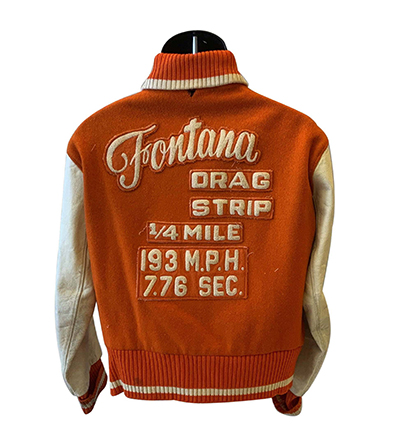 “There’s several jackets from Lion’s Drag Strip; Lion’s is one of the most iconic drag strips ever, and we have several of the lettermen’s jackets from Lion’s, including Gordie Bonin’s jacket. Gordie Bonin was one of the first Funny Car guys to regular go 240 mph, hence the nickname ‘240 Gordie.’ ”