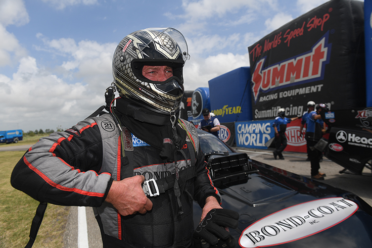 On paper, the Funny Car final might appear to be a mismatch when three-time world champion Matt Hagan takes on first-time finalist Bobby Bode. Hagan has been the class of the field on Sunday with a string of low 3.9-second runs including a 3.937 to beat J.R. Todd’s DHL Toyota. Bode, in just his 15th race as a professional, defeated Chad Green, 4.03 to 4.16.