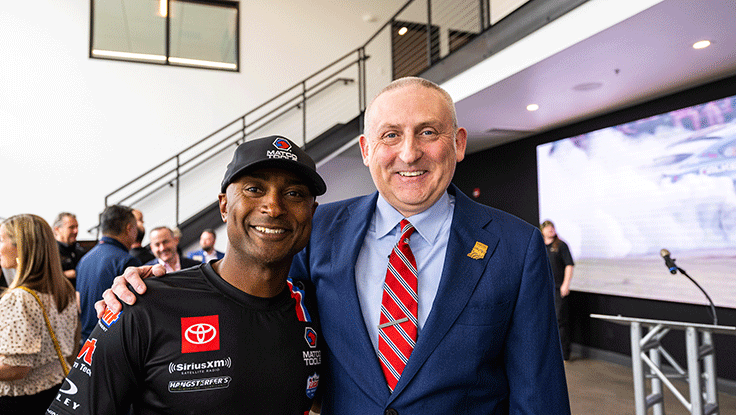 Racers and dignitaries, including three-time NHRA Top Fuel world champion Antron Brown, joined hundreds of motorsports professionals for the grand opening and ribbon-cutting ceremony of the new Performance Racing Industry (PRI) Membership Headquarters in Speedway, Ind., on May 26.