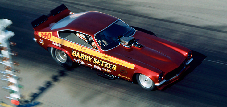 As an impressionable, almost-teenage drag racing fam in the early 1970s whose primary contact with the sport was through the many monthly magazines, Barry Setzer was a bit of an enigma. His name was everywhere in 1972 and ’73, plastered on the side of a bad-ass maroon and gold Vega Funny Car wheeled by Pat Foster, but to many fans like me, he well could have been the Man from U.N.C.L.E.