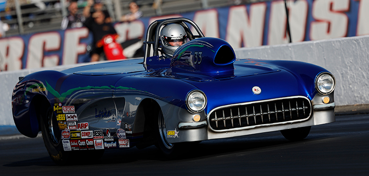 Locke’s best performance actually came in the quarterfinals against Matt Treadway, where he left first with a .005 light and won a 9.890 to 9.874 double breakout. He also defeated semifinal opponent Kowalski by driving his ’58 Corvette roadster to a near-perfect 9.909.