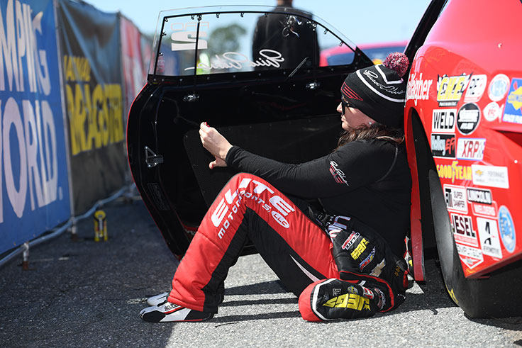 As if Anderson’s loss wasn’t puzzling enough, four-time champion Erica Enders followed with an uncharacteristic holeshot loss against fellow champ Bo Butner. Enders re-set the Pro Stock elapsed time record with a 6.450, the quickest pass in the history of the class, but the win light did not come on in her lane due to Butner’s .003 to .077 reaction time advantage. Enders, who has a reputation for being one of the class’ best starting line drivers, took full responsibility for the rare round one loss.