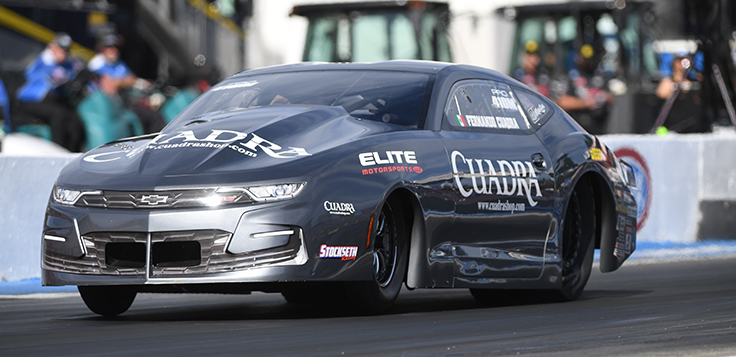 Father usually knows best, and that held true during the round two Pro Stock race featuring Fernando Cuadra Sr. and his son, Cristian. The two Corral Boots entries put on a good show, but Fernando Sr. prevailed to reach the semifinal round for the first time this year and third time in his career. The elder Cuadra gave up a lead at the start, but Cristian’s car made a less than perfectly straight run and slowed to a 6.624, allowing dad to take the win with a 6.565. Cristian kicked off the Countdown to the Championship in the No. 13 spot but has climbed to No. 8 after his recent success.