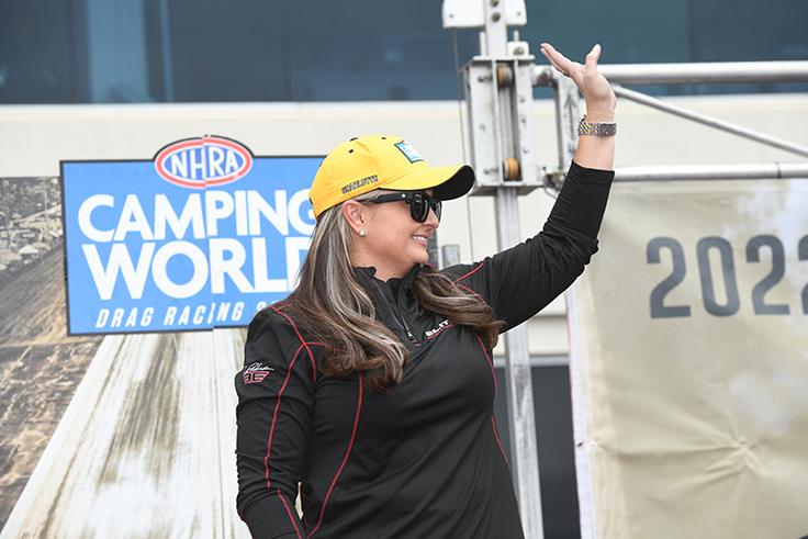 Alexis DeJoria drew a cheer from the Funny Car pits as a whole when she defeated points leader Robert Hight in their second-round clash. DeJoria got a little edge at the Tree and expanded it to win by exactly a hundredth of a second. The win moved her from ninth place to seventh in the standings.