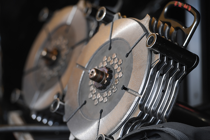 Floaters are disposable — one run and they go in the trash. A clutch pack has brand-new floaters every time. Discs can go up to four runs depending on wear, but they are cut (resurfaced) after every run to be sure they are perfectly flat.
