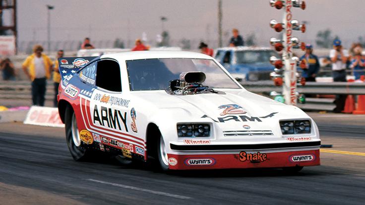 Don Prudhomme had begun the 1975 season in Pomona behind the wheel of what would become one of the most successful and iconic Funny Cars of the era, a red, white, and blue-adorned Chevrolet Monza bearing the colors of “the Snake’s” new sponsor: the U.S. Army.