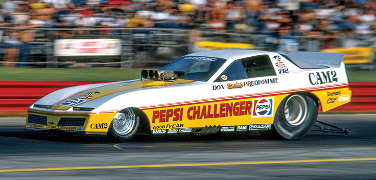In 1982, Prudhomme partnered with Pontiac on a sleek new Firebird body and sponsorship by Pepsi in a bid to return to his championship form. Before long, the team hit on a new combination built around a new style of vane fuel pump, and suddenly “the Snake” was back. At the Cajun Nationals in Baton Rouge, La., the Pepsi Challenger became the first Funny Car to exceed 250 mph.