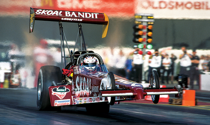 The first year was tough, including two blowover wheelstand crashes, but he won three times in both 1991 and 1992 then, after a winless 1993, declared that 1994 would be his final go-round, called The Final Strike tour. Fans flocked to the races to see the legend’s last season, and he was honored all along the way, often with gifts presented to him by the track operators at each event. He won three more times that season to boost his career total to 49 and battled hard for a storybook world championship conclusion, but he came up just short, finishing second behind Scott Kalitta.