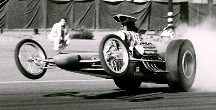 The vaunted Greer-Black-Prudhomme dragster was the terror of the Southern California Top Fuel wars from its victory in its June 1962 debut at Pomona Raceway through the end of the 1964 season. While a famous Schiefer Clutch advertisement claimed that Prudhomme racked up a stunning 236-7 win-loss record in that time, the real number is closer to 81-8, still an impressive number, and any time that they lost, it was big news. Black’s deft hand on the engine and clutch developed a combination that, unlike many of the cars of the era, did not smoke the tires the length of the quarter-mile and was thus more consistent and tunable.