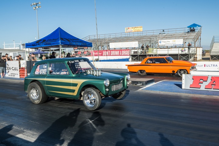 Gary Lynch was on the money in the C/Gas final when he drove his ’58 Austin to a 9.605 to claim the title against Billy Teague, who wasn’t far behind with a 9.636.
