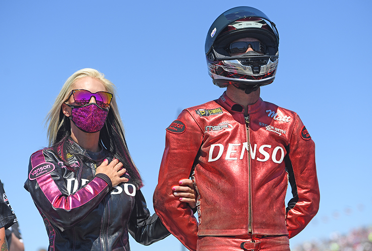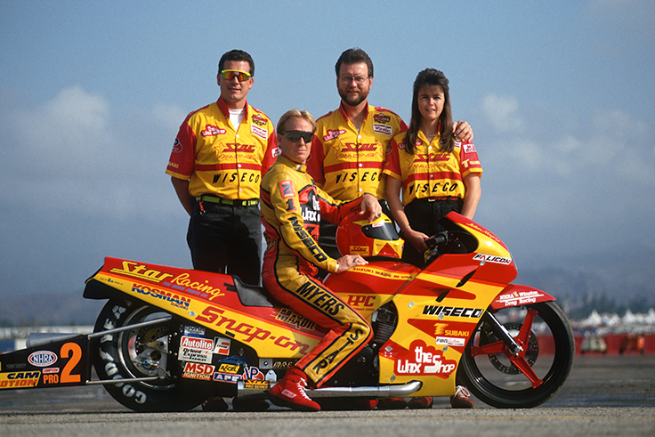 Angelle Sampey, who joined George Bryce’s Star Racing squad as a teammate to Myers at the Denver event in 1996, emerged from that tragedy as Hines’ biggest rival and scored nine wins and finished in second place behind him in both 1998 and ’99. The Vance & Hines vs. Sampey battles would continue for years until she unexpectedly joined their team in 2019 for a three-year stint.