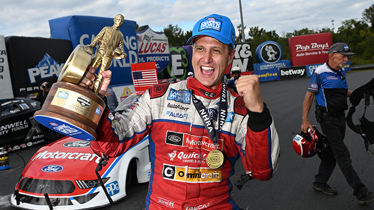 He won on Sunday in Charlotte, getting past points leader Robert Hight in a thrilling final round to move to second in points. He trails Hight – the defending Funny Car winner in St. Louis – by just 25 points, firmly putting his name in the championship mix. But Tasca, who qualified No. 1 at the first race of the playoffs, is eager to keep rolling in his 11,000-horsepower Motorcraft/Quick Lane Ford Mustang this weekend at World Wide Technology Raceway.