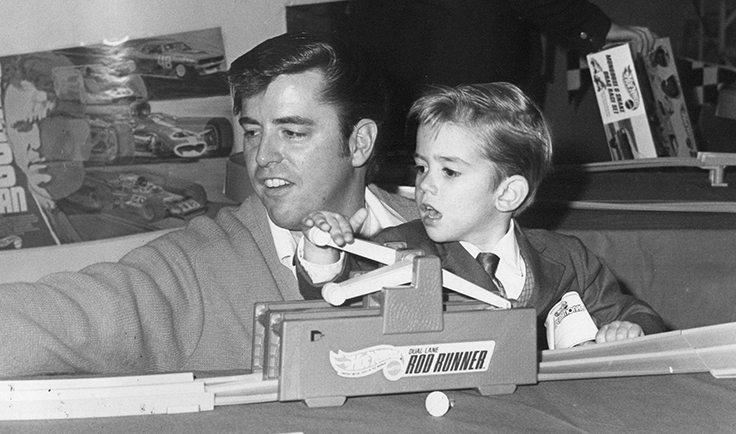 Besides, according to Prudhomme, Mattel thought that the Hot Wheels 'Cuda would get more attention running dozens of mom-and-pop match races across the country than at just the few national events on the schedule, allowing “the Snake" and “Mongoose” to stage in-market promotions like Hot Wheels races with kids across the country, like his future driver, Larry Dixon Jr., seen here with his father in th early 1970s.