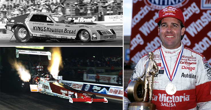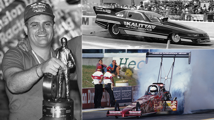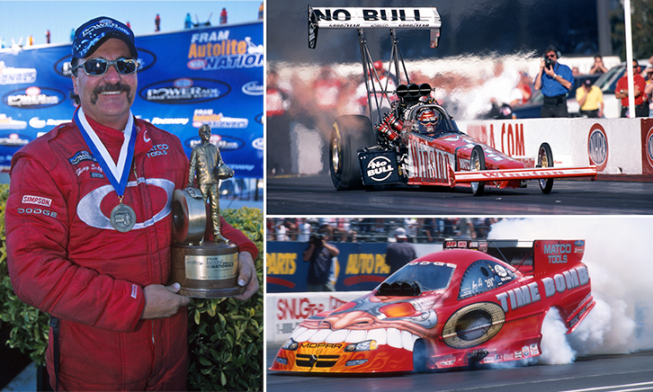 Drag racing’s “Wild Thing” collected wins in all four supercharged dragster and Funny Car classes, starting with a trio of wins in Top Alcohol Dragster in the mid-1980s and three more in Alcohol Funny Car in the early 1990s before adding Top Fuel (25 wins) and Funny Car (12 victories) to his collection in a career that lasted into the late-2000s.
