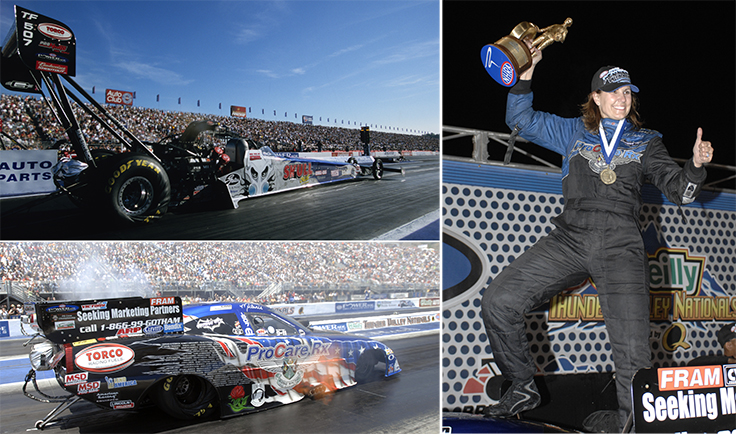 Troxel went Funny Car racing in 2008 behind the wheel of Mike Ashley’s ProCare RX Dodge and made even more history. Two races after becoming just the second female to win in Funny Car (beat to the milestone two races earlier by Ashley Force in Atlanta), Troxel won in Bristol, stopping Mike Neff in the late-night finale. Two races later, she became the first female to qualify No. 1 in both nitro categories when she grabbed the pole at the Chicago event that year. Troxel later went on to add two Pro Mod wins to her amazingly diverse résumé.
