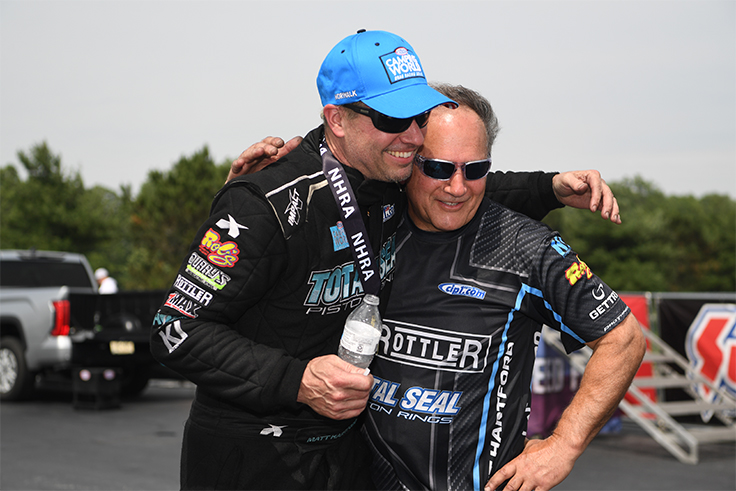 "I don't think it's any different than it's been all year," said the drag racing veteran who first joined Hartford's team in 2013. "When the points reset, we were fortunate enough to win Reading in a challenging environment, but the truth of it is, we went to Charlotte and it took two rounds to tighten it up. To make a mistake or go out early or match up with somebody you don't think you should have matched up with, that becomes an issue. It's no different than Dallas [Glenn] being out in the first round in Reading — there's a guy that led the points all year. He shouldn't [have been] four cars back coming into this thing. It's definitely a round-by-round deal."