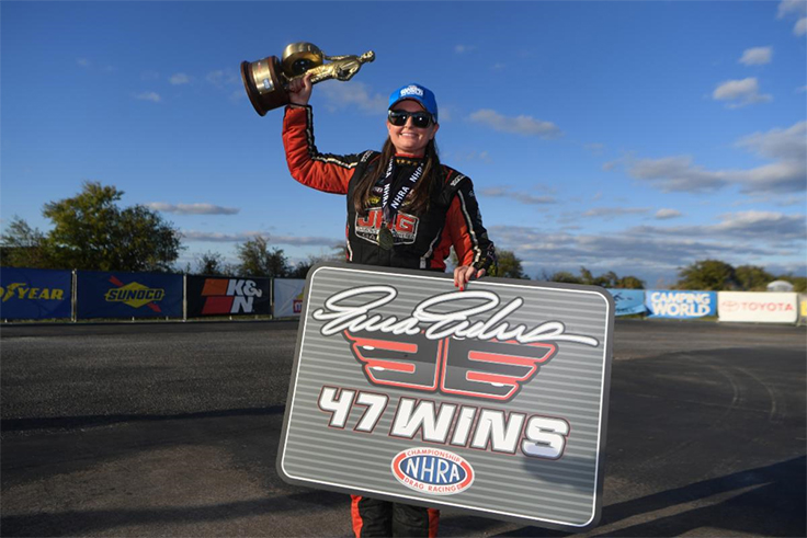 She qualified No. 1 at the first three races in the Countdown to the Championship, advancing to three straight semifinals. After taking the lead in St. Louis, she all but slammed the door shut with clutch performances in Dallas and Las Vegas, earning her NHRA-record 10th victory at The Strip at Las Vegas Motor Speedway.