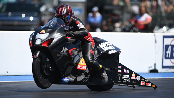 While the story all season in Pro Stock Motorcycle has been Gaige Herrera’s dominance aboard the Vance & Hines-prepped Mission Foods Suzuki, his teammate, veteran Eddie Krawiec, showed real signs of life in Seattle that he’s ready to make the team a two-bike juggernaut like they were when he partnered with the team’s crew chief, retired rider Andrew Hines.