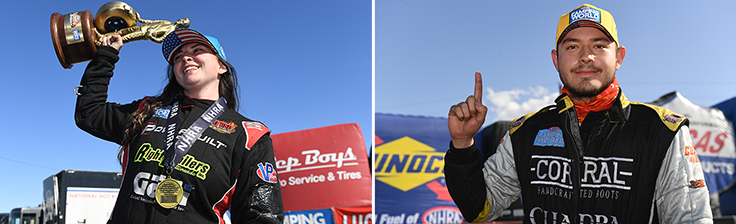 Cuadra lost in a weird second-round battle to Caruso, where she unintentionally double-bulbed the Christmas Tree (for which she quickly apologized), but that moment was not enough to detract from her becoming just the second female to win an NHRA Pro Stock title. Caruso, who last year got her first No. 1 spot and her first final-round berth in Houston, went the distance this year to take her place alongside Erica Enders in the history of the class.