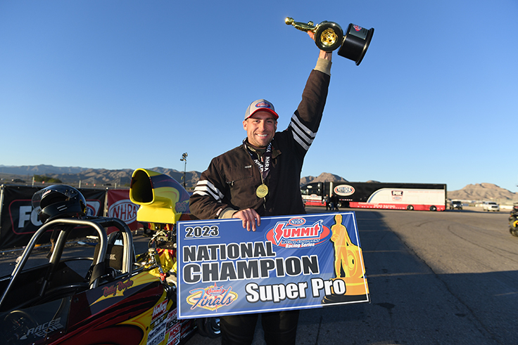 Division 1 racer Billy Boyko traveled a very long way to compete in the NHRA Summit Racing Series national championship battle, and it paid off big for the Bathe, Pa., resident as he claimed the Super Pro championship. Boyko was killer on the Tree in testament to the skills required to qualify for such an event: his .007 reaction time complemented a double-breakout victory in the first round, he was .00 again in the second round to claim a ticket to the final, and he was a perfect .000 as he launched off the starting line in his RaceTech dragster to get the jump on Tony Virgilio. Congratulations to each of the newly crowned Summit Racing Series national champs!