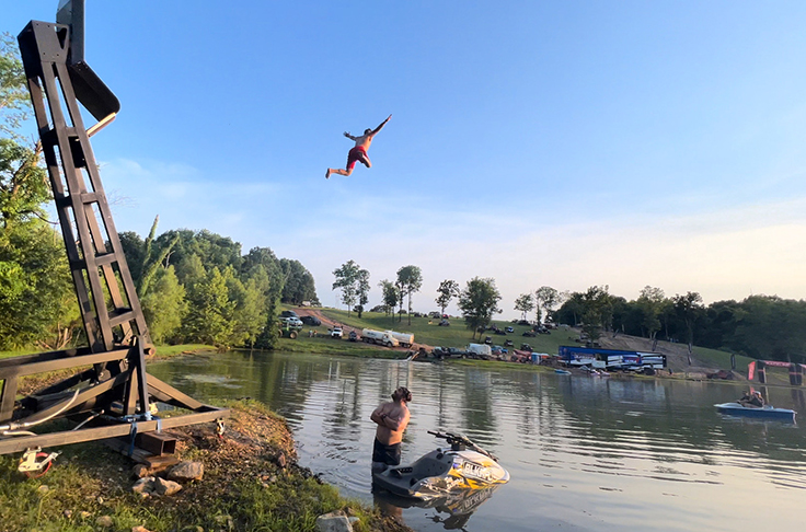 With the NHRA on a break last weekend, Laughlin traveled to the MidAmerica Outdoors event in Oklahoma, where he hung out with Travis Pastrana and his RallyCross team, took in the Nitro Circus show and freestyle jet ski show, and, of course, just had to try out Pastrana’s human catapult.