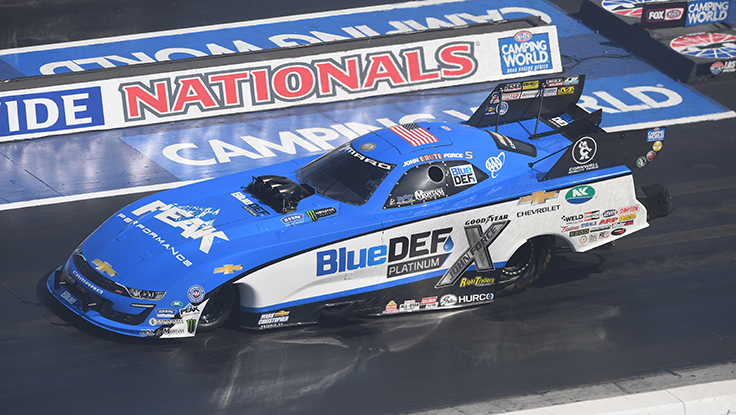 Force moved up five spots in the loaded Funny Car points standings by advancing to the final quad in Las Vegas two weeks ago, feeling good about this weekend in his PEAK BlueDEF Platinum Chevrolet Camaro SS at one of his favorite stops on the NHRA Camping World Drag Racing Series tour.