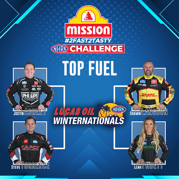 The final day of qualifying for the Lucas Oil NHRA Winternationals will not only set the fields for Sunday’s final eliminations but also will be highlighted by the second running of the Mission #2Fast2Tasty NHRA Challenge during the day’s two qualifying sessions.