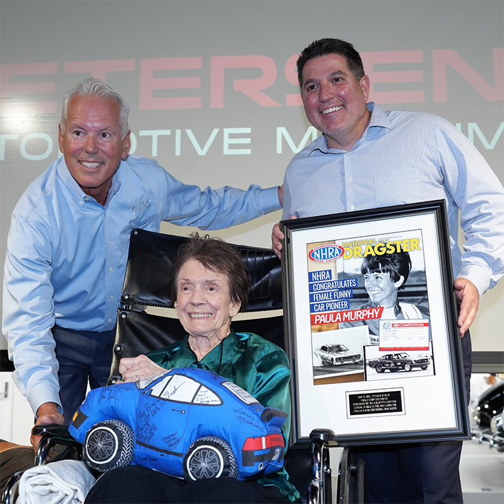 Trailblazing female racer Paula Murphy, who among her many accomplishments was the first woman licensed to compete in any NHRA nitro class when she licensed in Funny Car in late 1966, was feted by the Women in Motorsports North America at the Petersen Museum in Los Angeles on May 24. NHRA executives were on hand to help honor her.