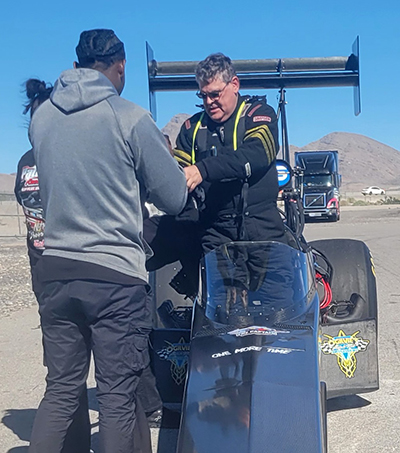 Long-time Albuquerque, N.M., racer Lyle Greenberg completed his Top Fuel licensing passes in the minimum three runs at The Strip At Las Vegas Motor Speedway on the Monday after the NHRA Nevada Nationals.