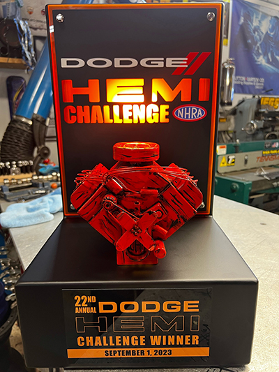 This year’s Dodge Hemi Challenge victor will be awarded $15,000 and, for the second year, a one-of-a-kind, custom-made trophy created by Tom Patsis of Cold Hard Art, a local Brownsburg, Ind.-based artist, former NHRA welder-fabricator, and winner of the 2021 Netflix competition series Metal Shop Masters.