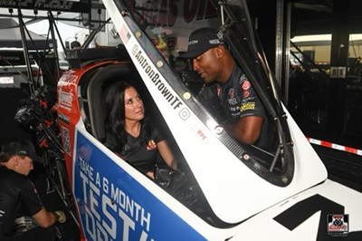 Sampey has performed the warmup procedures in Brown’s Matco Tools Top Fuel dragster several times this season to get comfortable in the seat of a nitro-burning dragster. After the Lucas Oil NHRA Nationals at Brainerd International Raceway, Sampey strapped into Jasmine Salinas’ Scrappers Racing A/Fuel Dragster to start the licensing process, which she completed Wednesday, Aug. 23, at Lucas Oil Indianapolis Raceway Park.