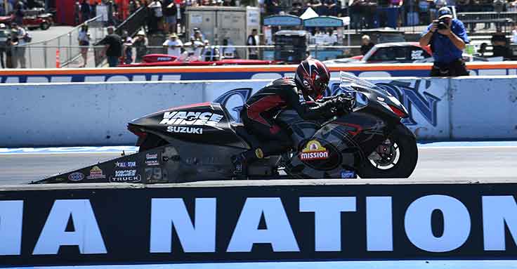 The only Pro Stock Motorcycle rider to challenge Gaige Herrera’s 6.728 from Friday was Herrera, who made the quickest pass of the day on Saturday with a 6.732 on his Vance & Hines Mission Foods Suzuki Hayabusa. Herrera has been nearly unstoppable in all facets of the sport this season, but he’s been particularly effective in qualifying, where he has been the No. 1 seed in seven of eight events and has often put considerable distance between himself and the rest of the field.