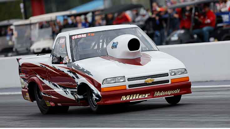 Miller did not attend the Las Vegas event, but he was able to clinch the Right Trailers Top Sportsman title when his closest pursuers were unable to overtake his 655-point score. Miller, who made several appearances this season in his family-owned Dodge Pro Stock entry, got off to a hot start in Top Sportsman by winning his first three starts, including the Division 1 Lucas Oil Series events at Cecil County Dragway and Maple Grove Raceway as well as the NHRA four-wide event in Charlotte. Miller also drove his six-second Chevy S-10 to victories at the Lucas Oil Series races in Richmond and Rockingham as well as runner-up finishes at his home event, the NHRA New England Nationals and the second Maple Grove divisional race.