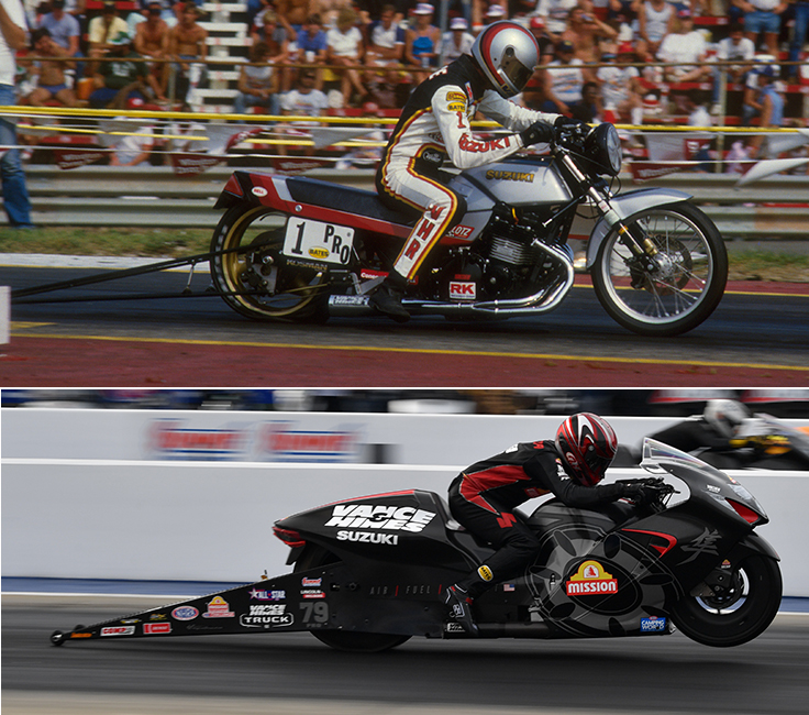 Riding style: “Today, we all leave on a rev limiter; back when I started, we would roll the throttle on and let the clutch go, and we tried to slip if we knew anything about slipping. Just the technique of riding, sitting down and popping the clutch back then versus leaning over like many do today. Back then, we launched at 13,000, and today, it’s 14,000, and there's a big difference between 13 and 14 in my eyes.”