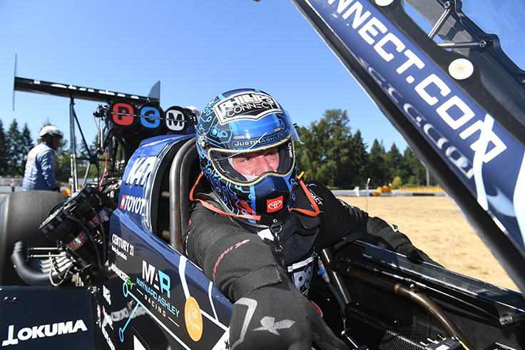 Points leader Justin Ashley put another 20 points in the bank, bouncing back from a first-round loss last weekend in Denver to defeat defending event champ Tony Schumacher. Ashley clocked a solid 3.73 to earn second-round lane choice.