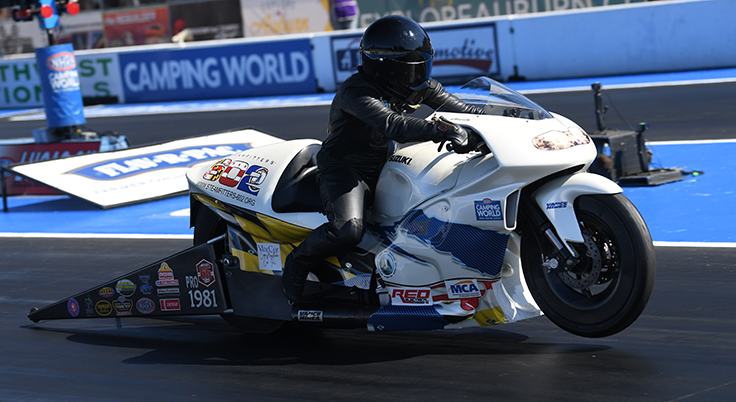 You could have almost predicted it, but Lance Bonham red-lighted against low qualifier Gaige Herrera, who motored away to new low e.t. of the meet, 6.729, as the Denver winner seeks to become the first PSM rider to sweep the Western Swing, and a second-round bye for the 14-bike field won’t hurt that effort at all.