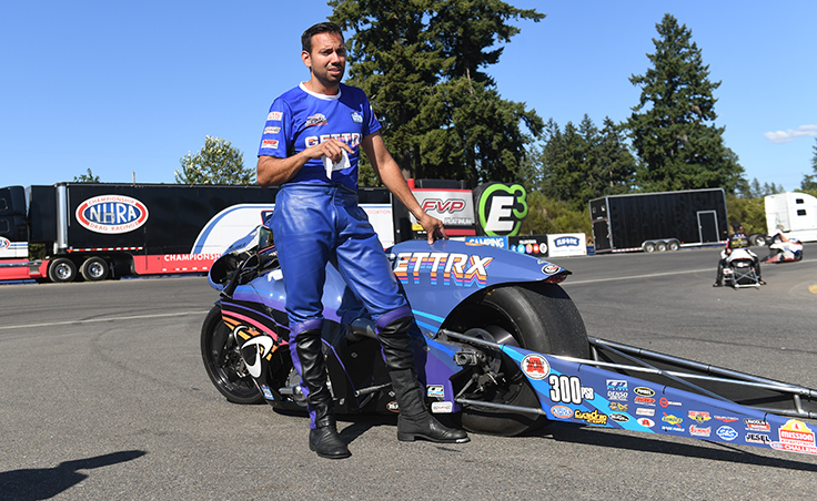 Hector Arana Jr., the first Pro Stock Motorcycle rider to eclipse the 200-mph barrier, became the second to do it in Seattle and took top speed away from Angie Smith with a 200.58-mph blast at 6.83 to ride around Karen Stoffer’s impressive .003 light.