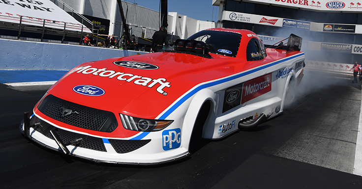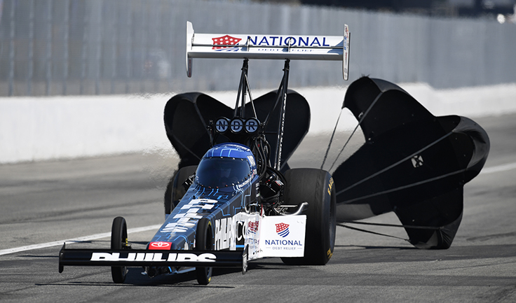 Austin Prock ran his record against teammate Brittany Force to a perfect 4-0 in head-to-head Pomona matchups and his win streak at this track to seven straight rounds with a 3.73 after Force puffed the tires early. It will be Prock’s seventh career Top Fuel final, his fourth straight in Pomona, and his first of the year.